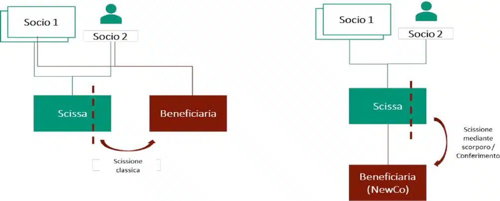 Graficamente, rispetto ad una scissione “classica”, l’operazione si configura come segue: